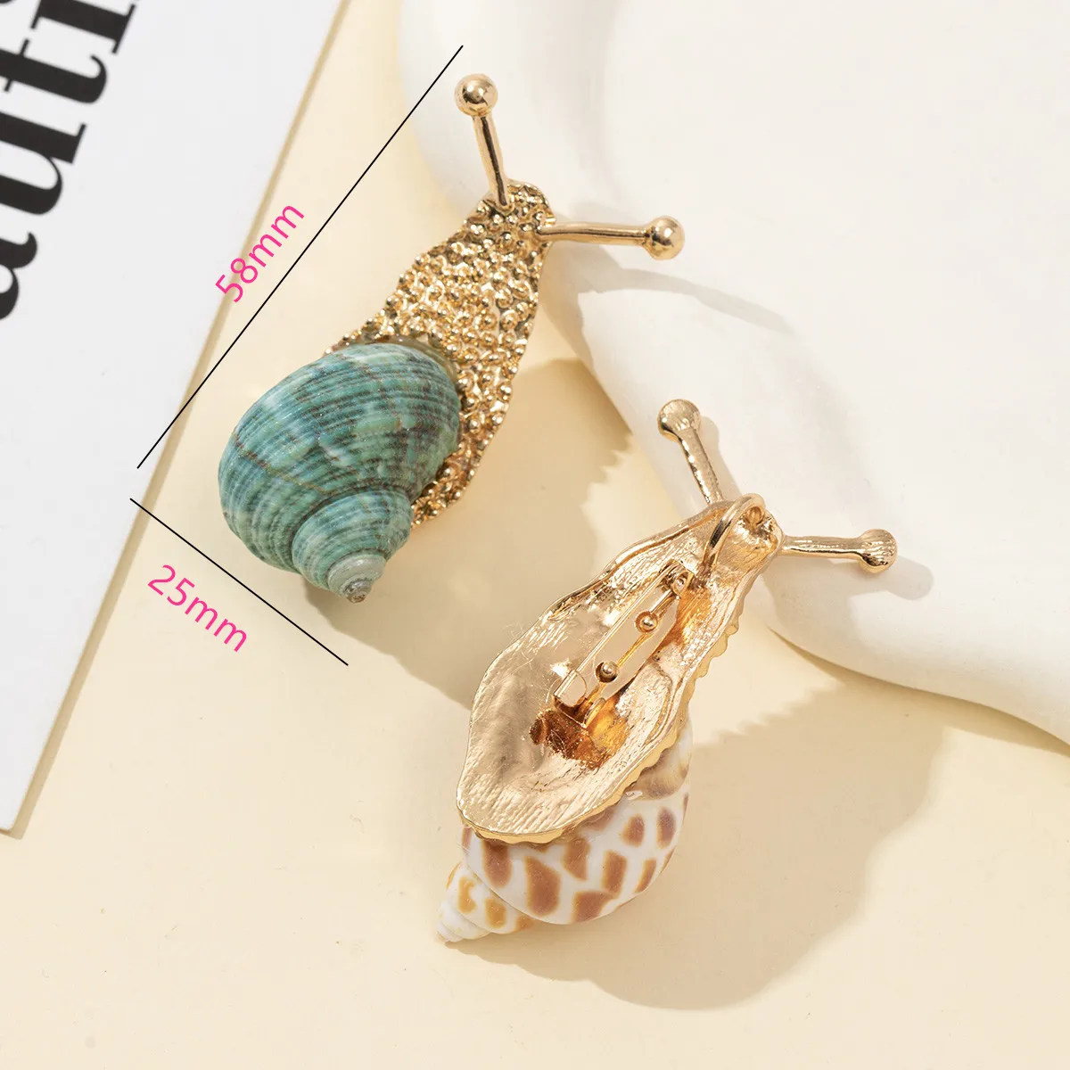 1pc Natural Shell Snail Shaped Rhinestone Inlaid Brooch Charms for Women Men Jewelry Accessories Daily Gifts 58x25mm