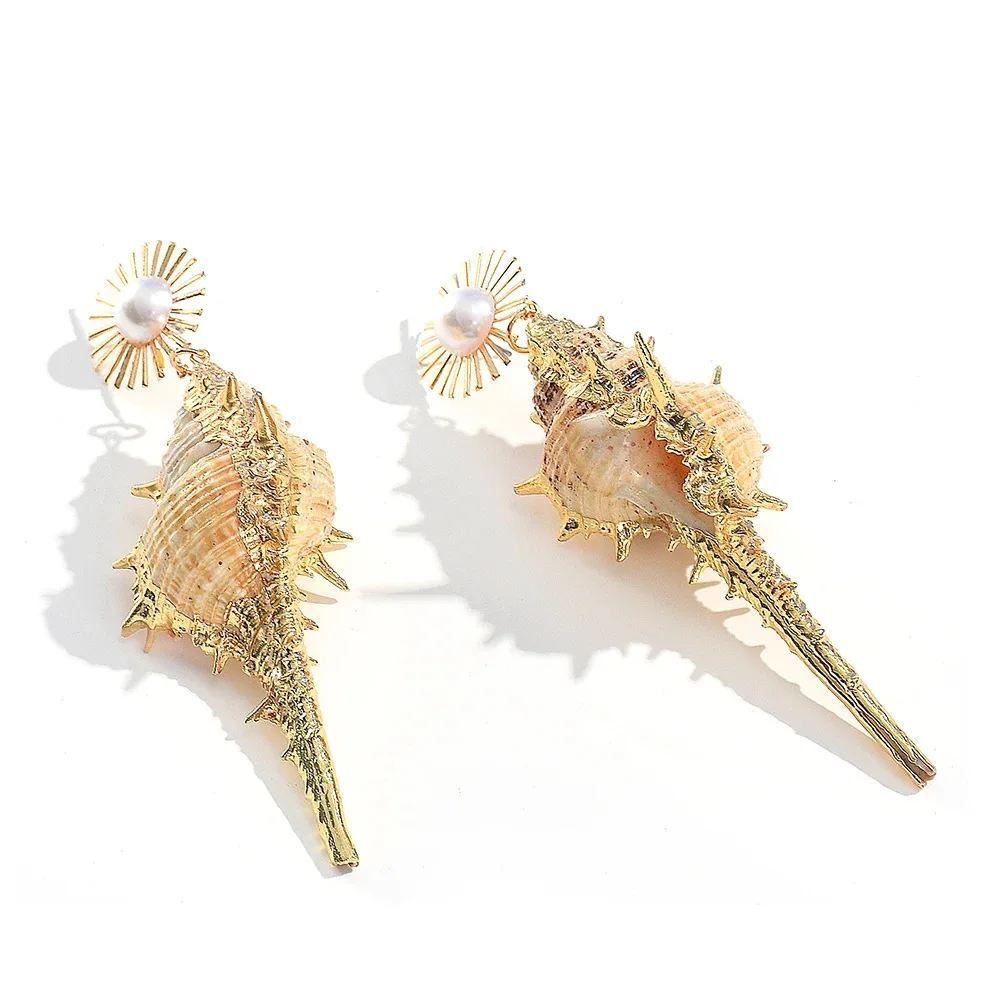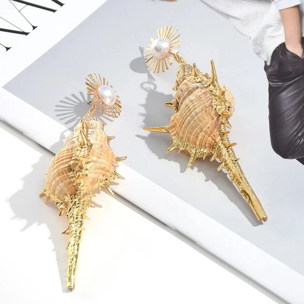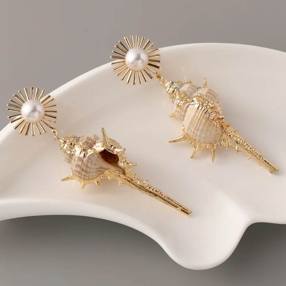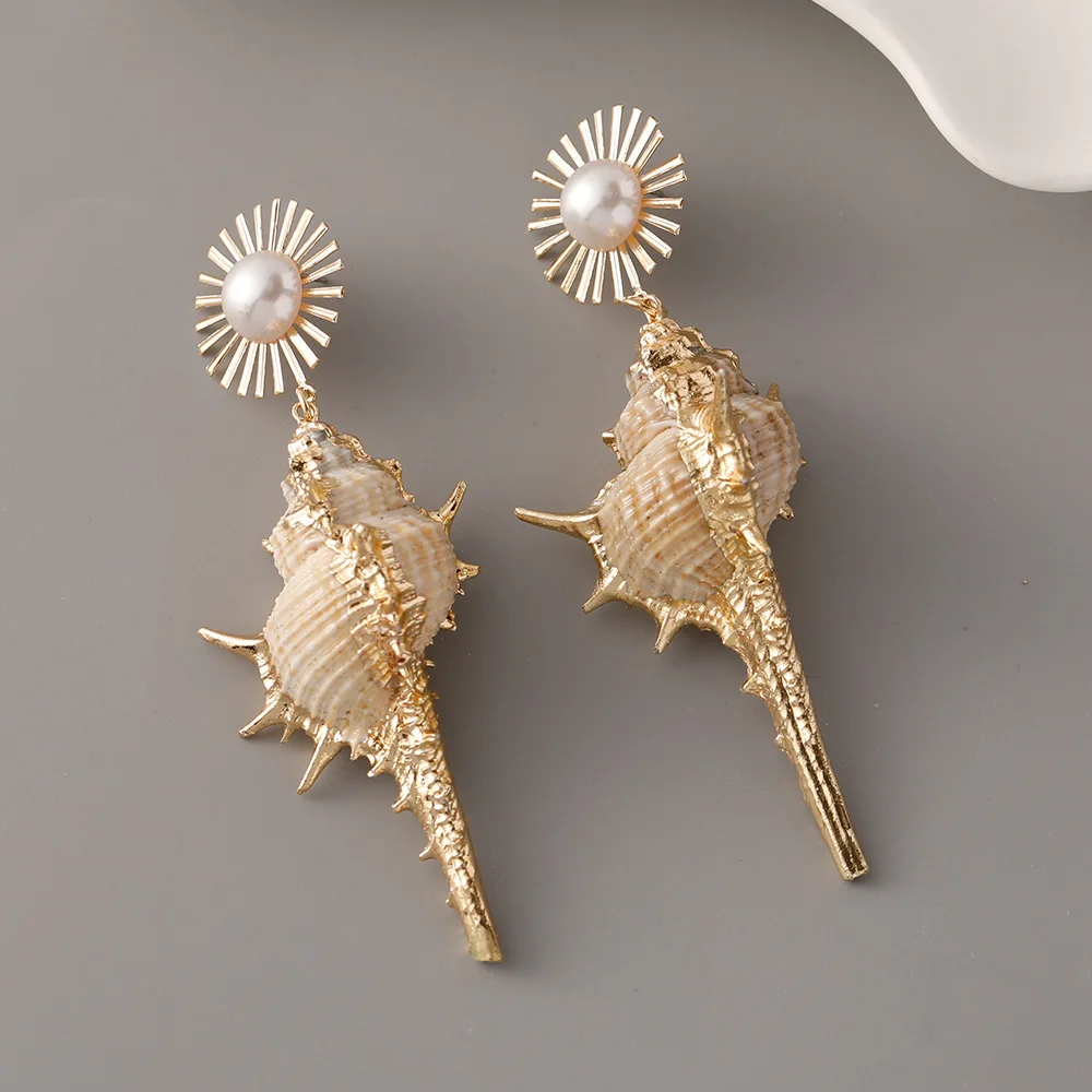 Bohemia Earring Wholesale Beach Seashell Conch Creamy White Natural Murex Shell Drop Earrings for Women Shell Conch Earrings