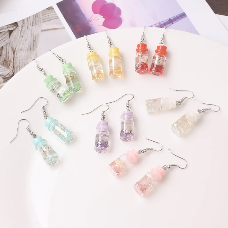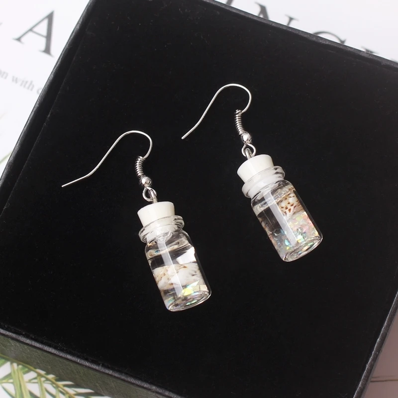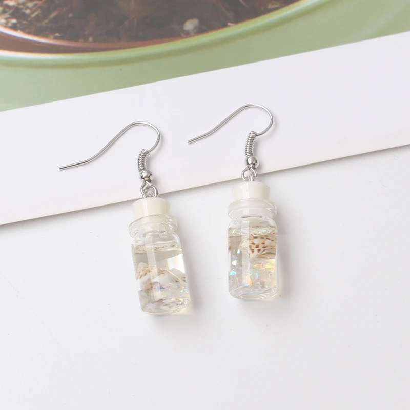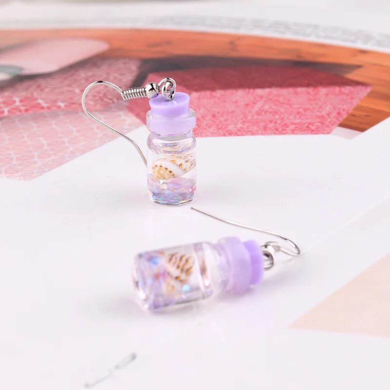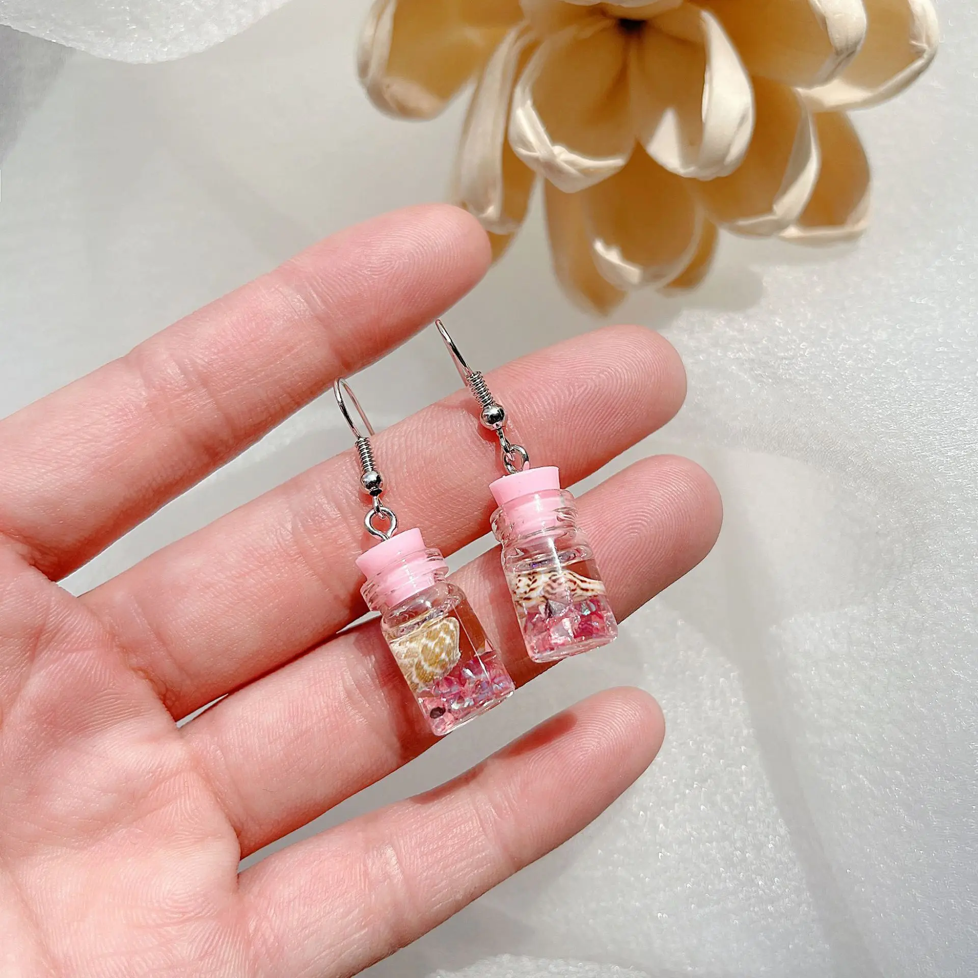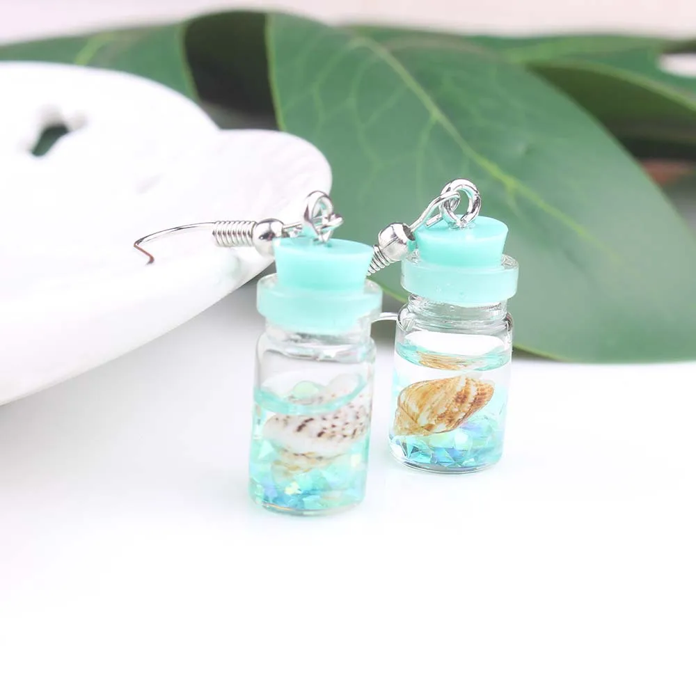Candy Color Creative Nature Conch Shell Ocean Drift Bottle Pendants Earring for Women Party Charms Funny Jewelry Girlfriend Gift