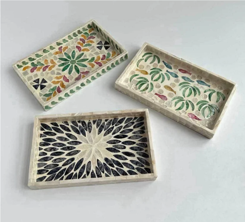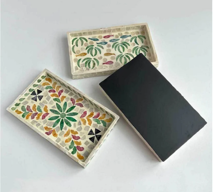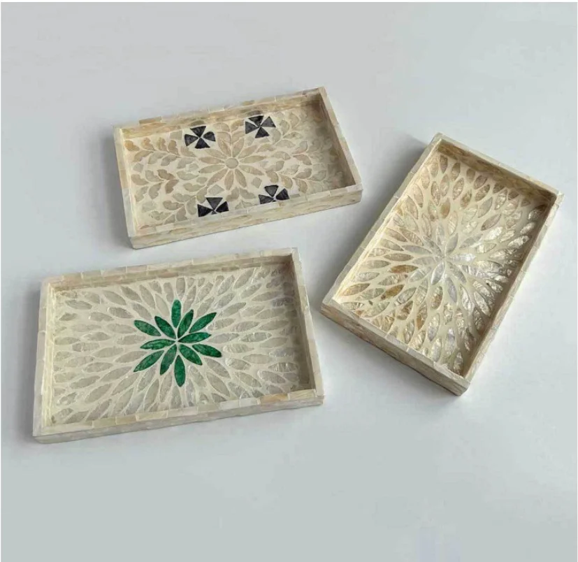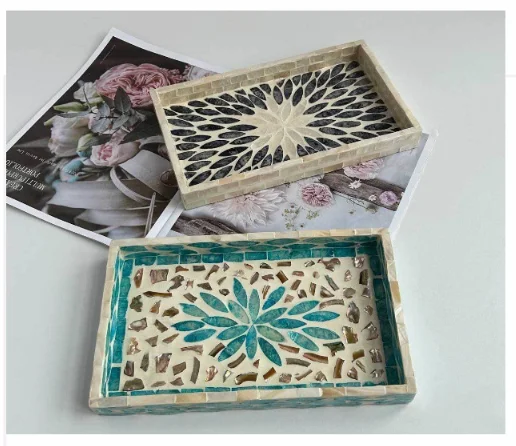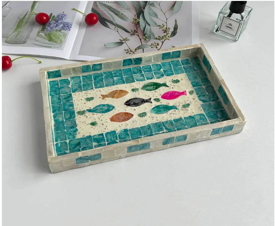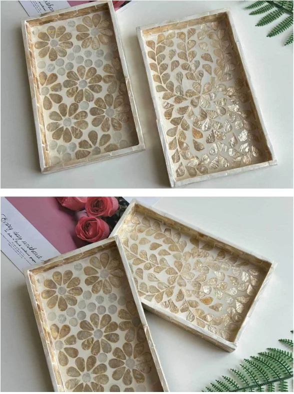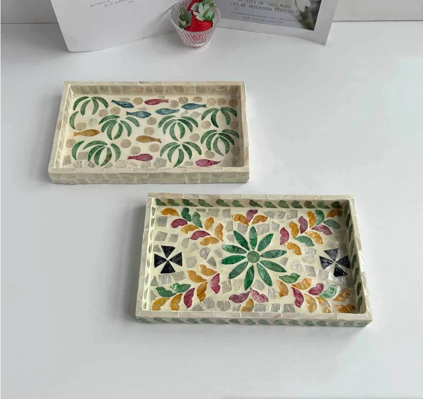 Creative Rattan Tray Home Snack Tray Hand-painted Shell Tray Living Room Desktop Decoration Plate Kitchen Storage Supplies