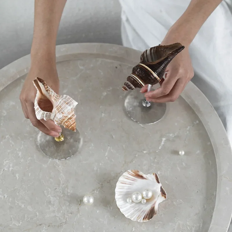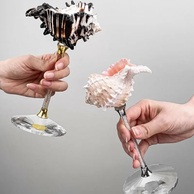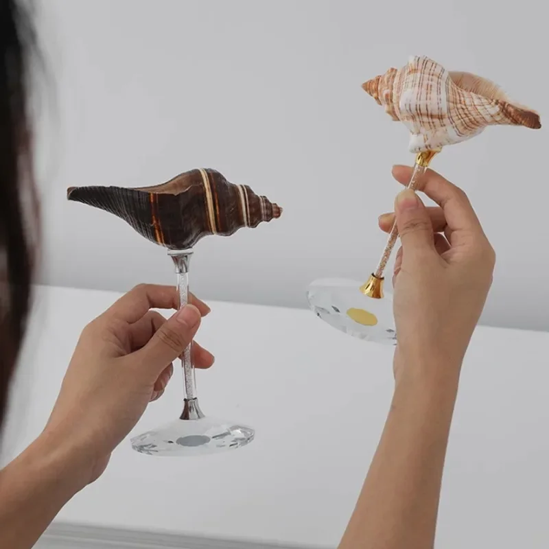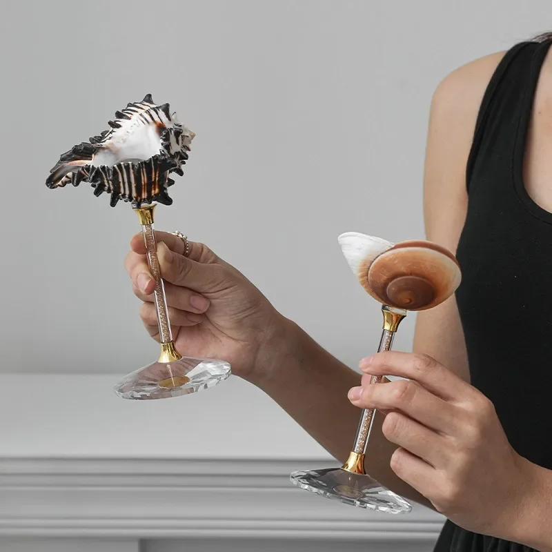 French Natural Seashell Tall Glass Bar Wine Fruit Juice Glasses, Table Decoration Gift, Art Pieces, Home Decoration