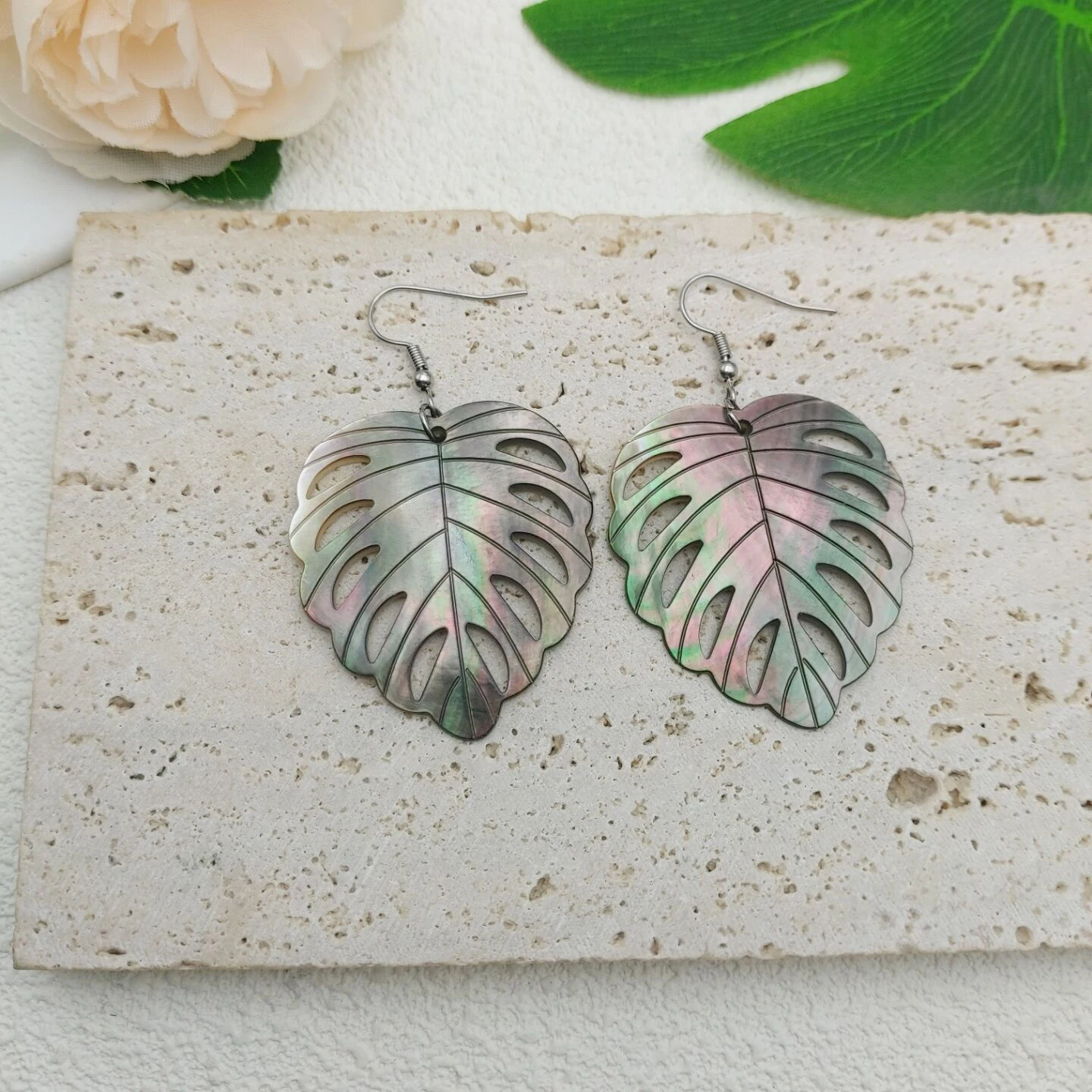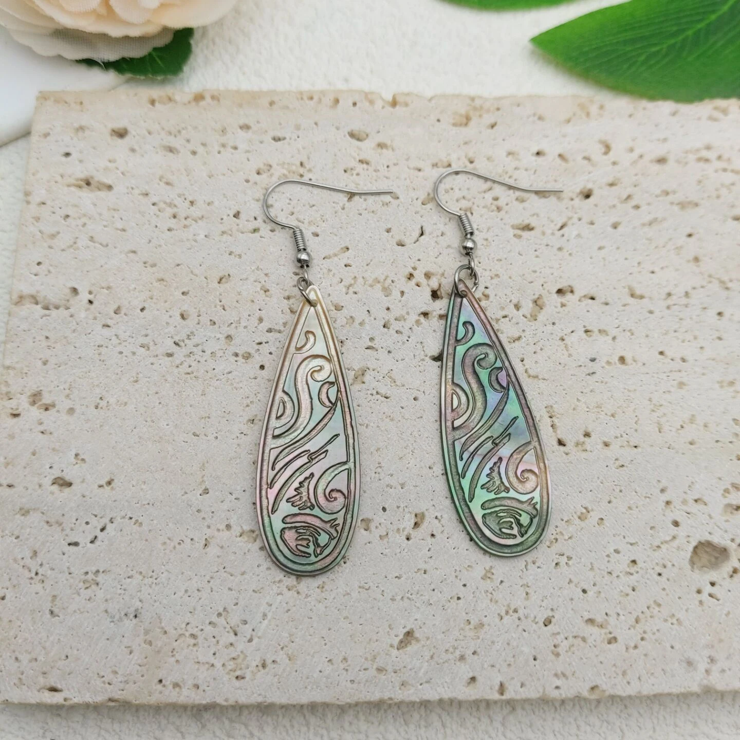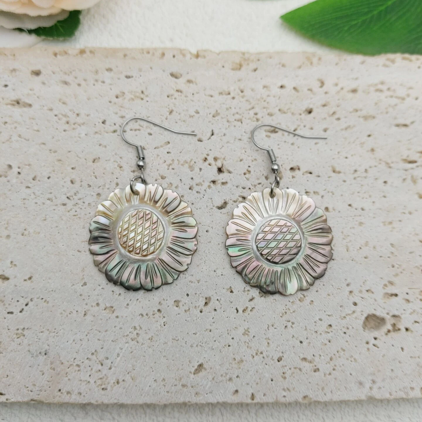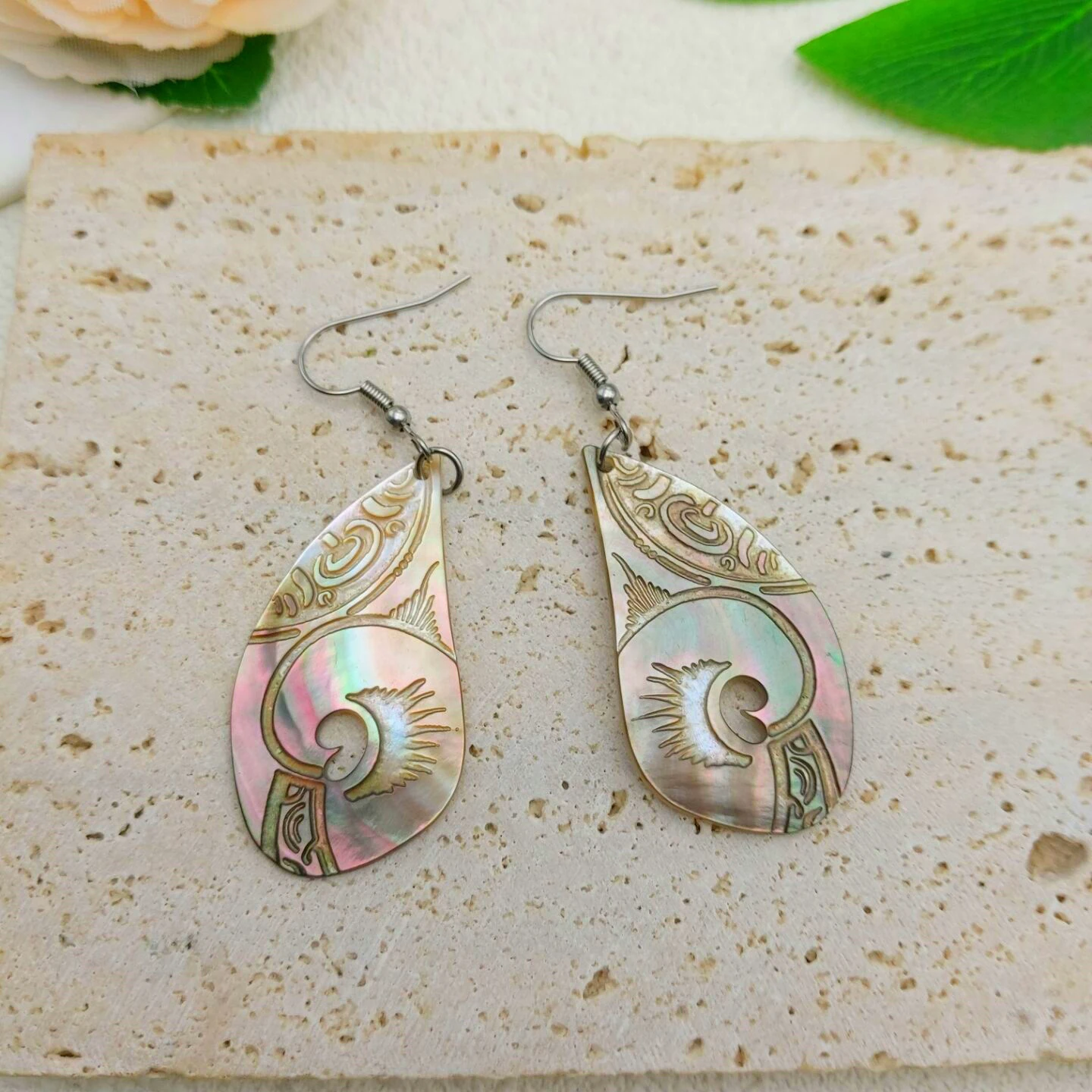 Hawaiian Style Natural Sea Shell Carved Earrings with Stainless Steel Hooks Handmade Boho Cultural Jewelry