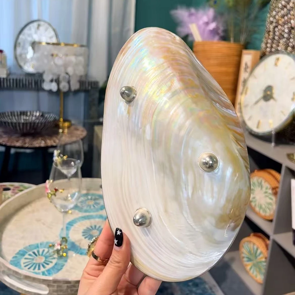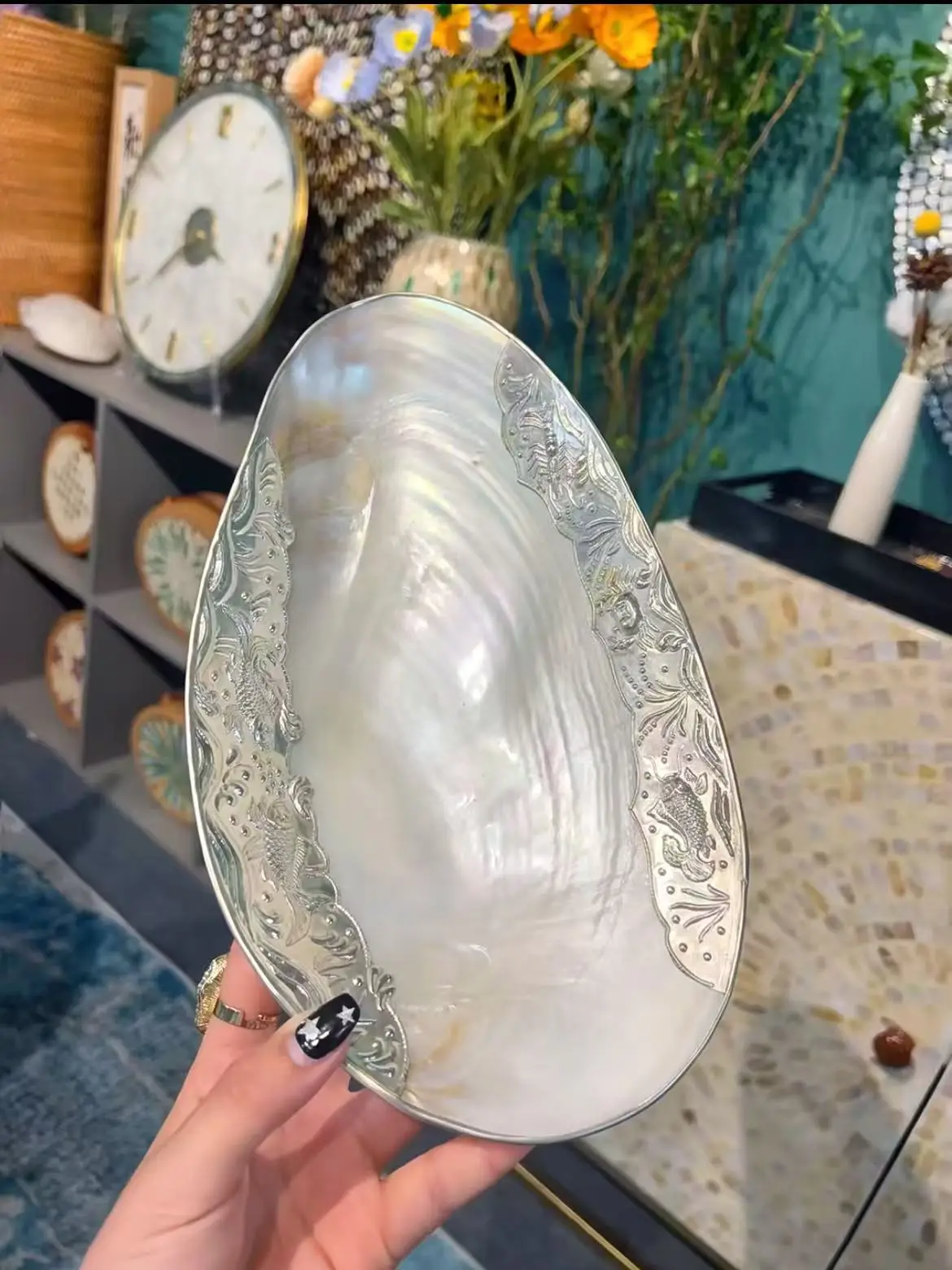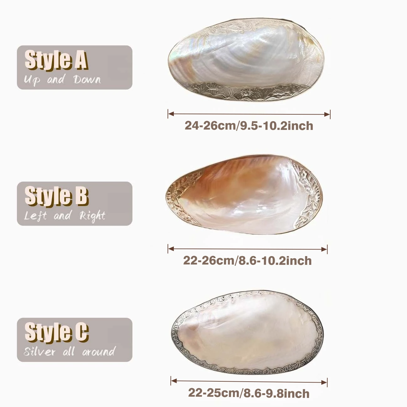 Large Vintage Silver Edge Shell Tray 24cm, Jewelry Display Bowl, Luxury Beach Home Decor, Nautical Photo Prop