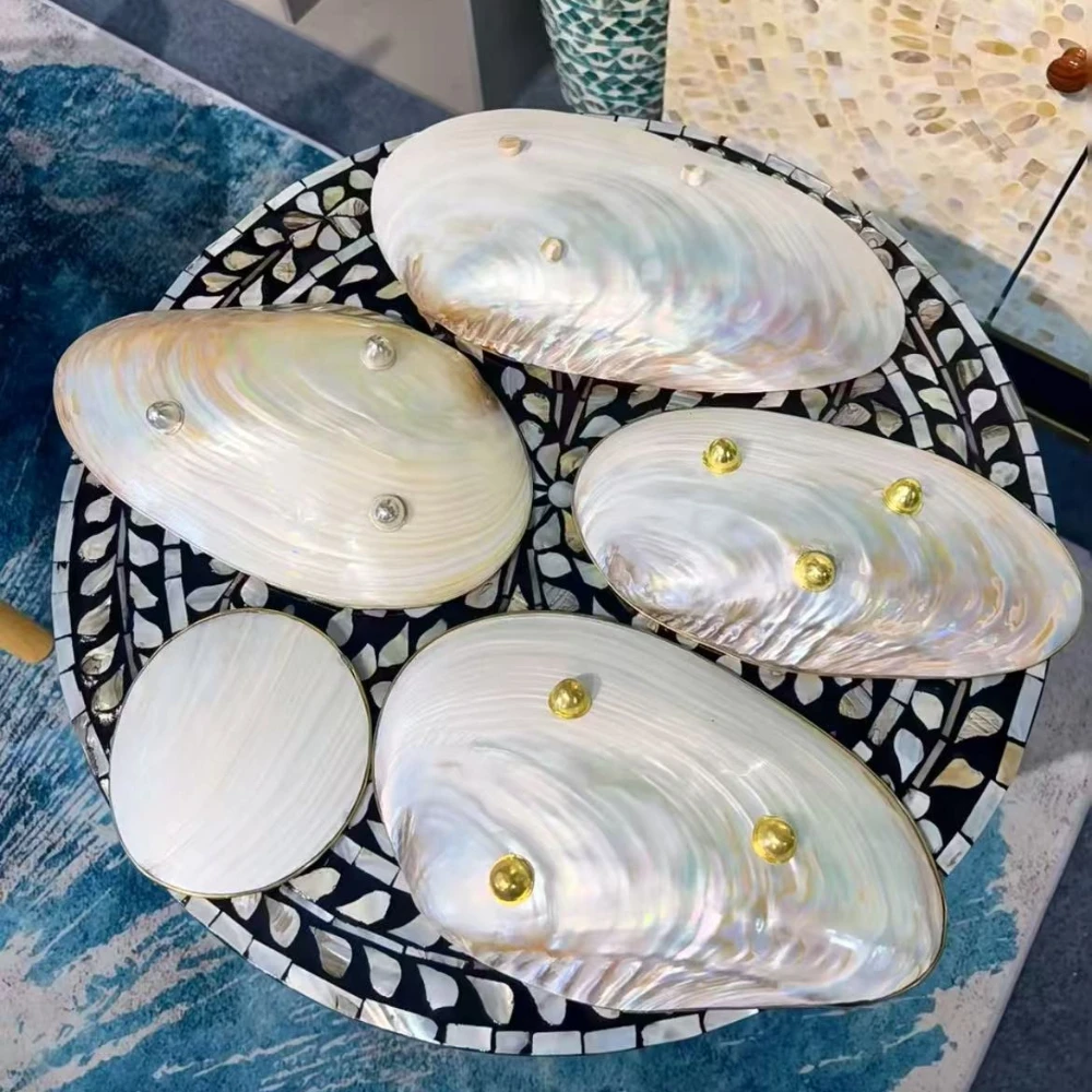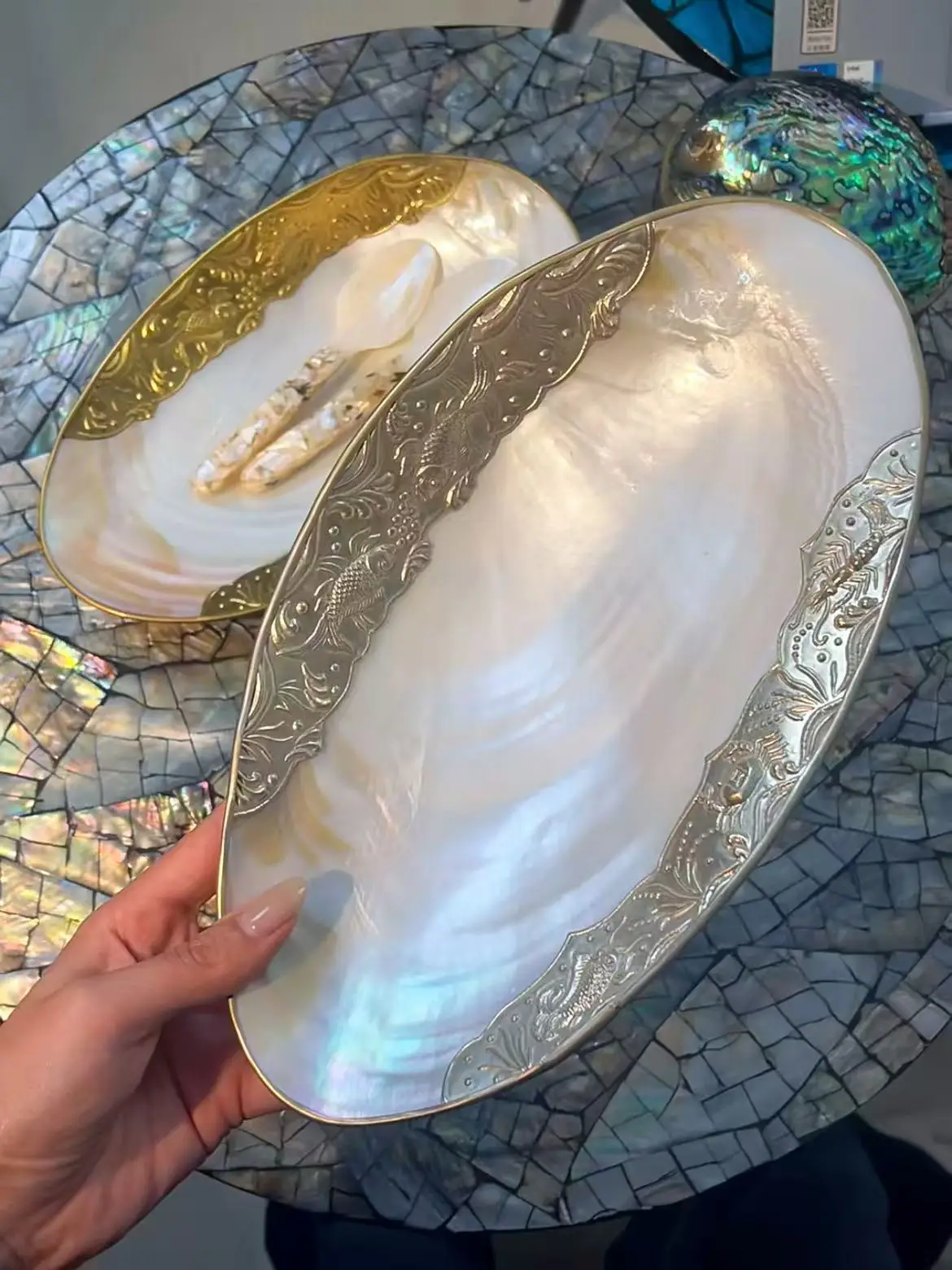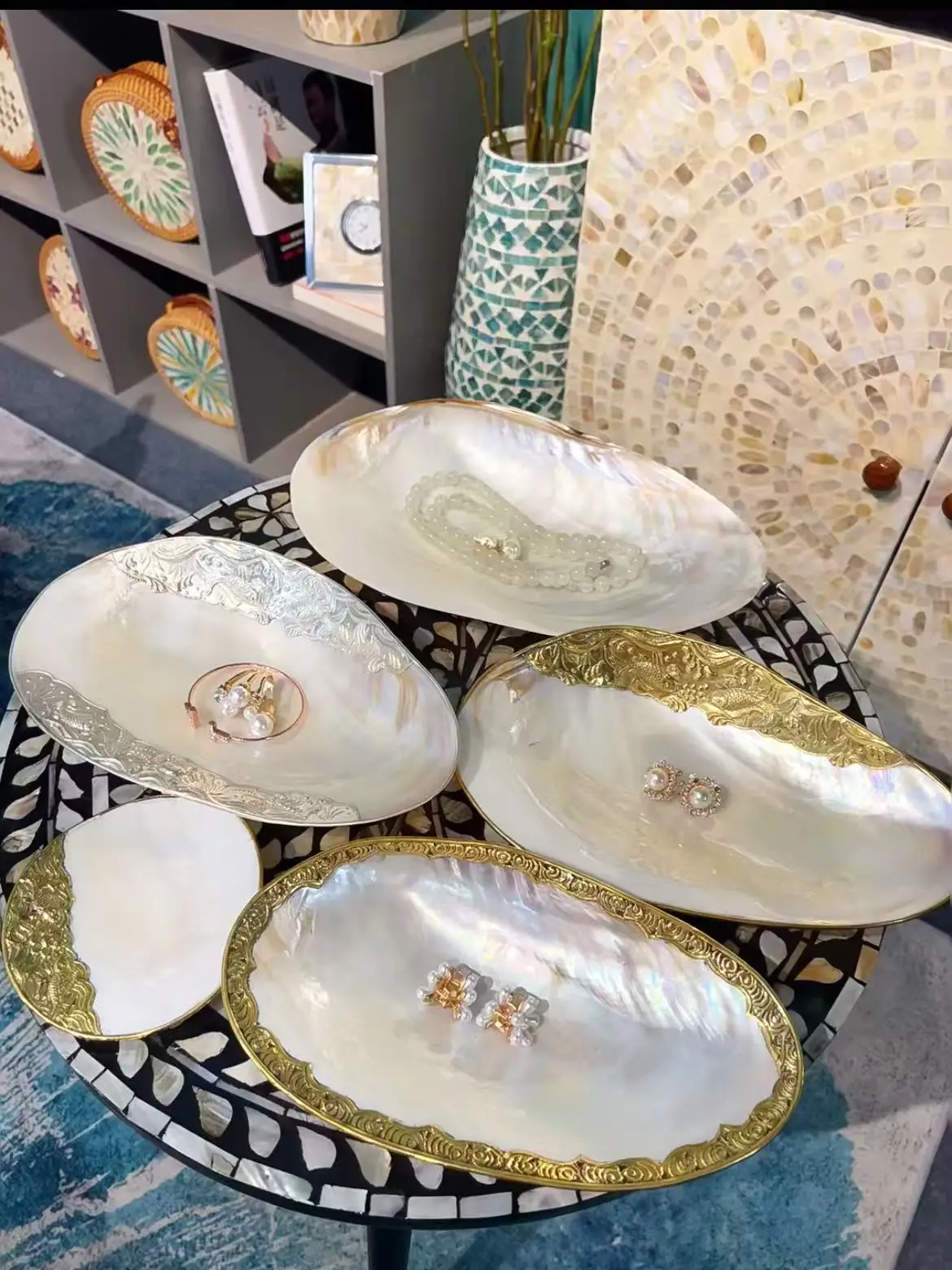 Large Vintage Silver Edge Shell Tray 24cm, Jewelry Display Bowl, Luxury Beach Home Decor, Nautical Photo Prop