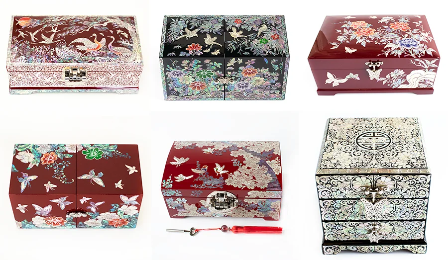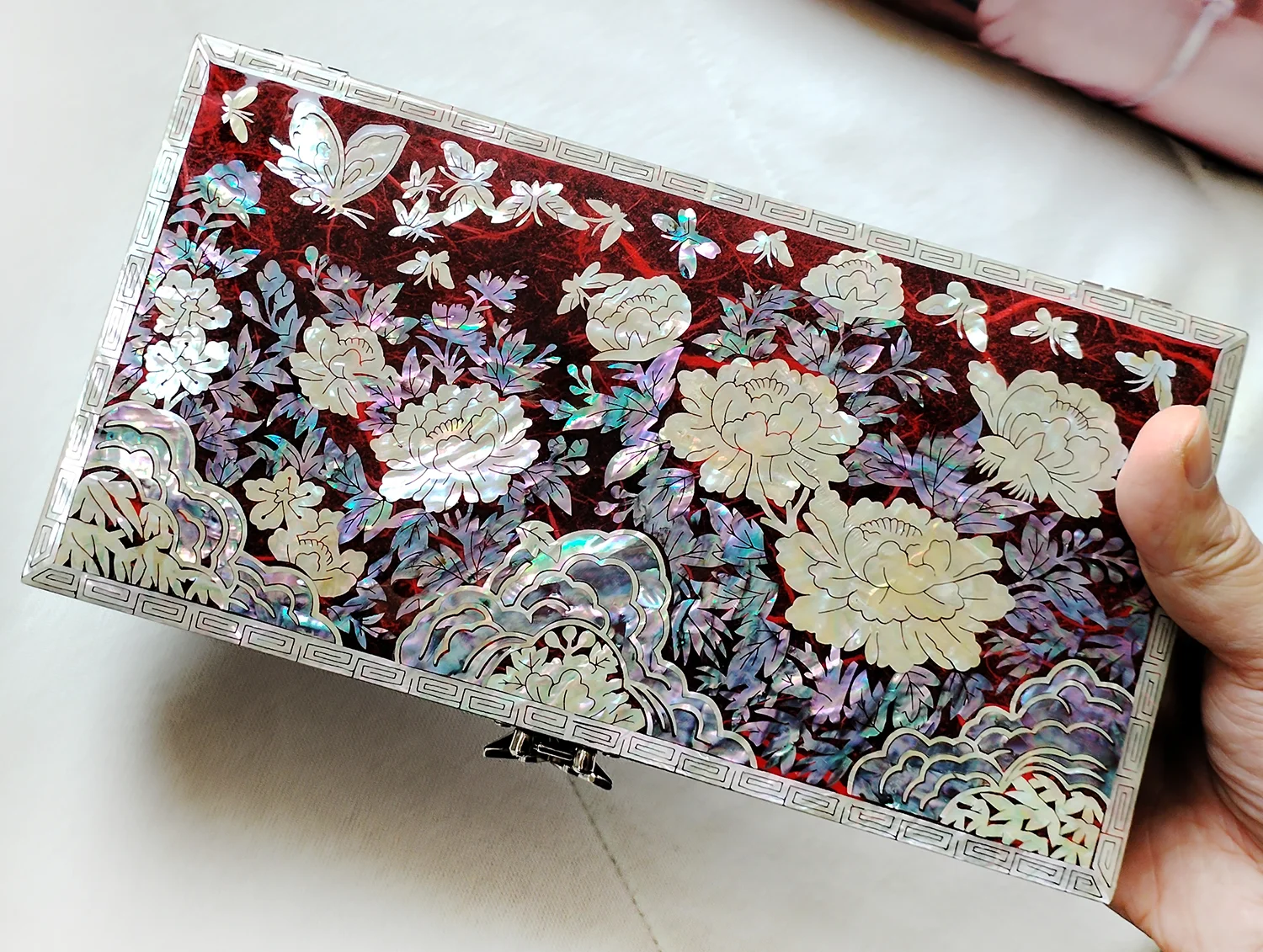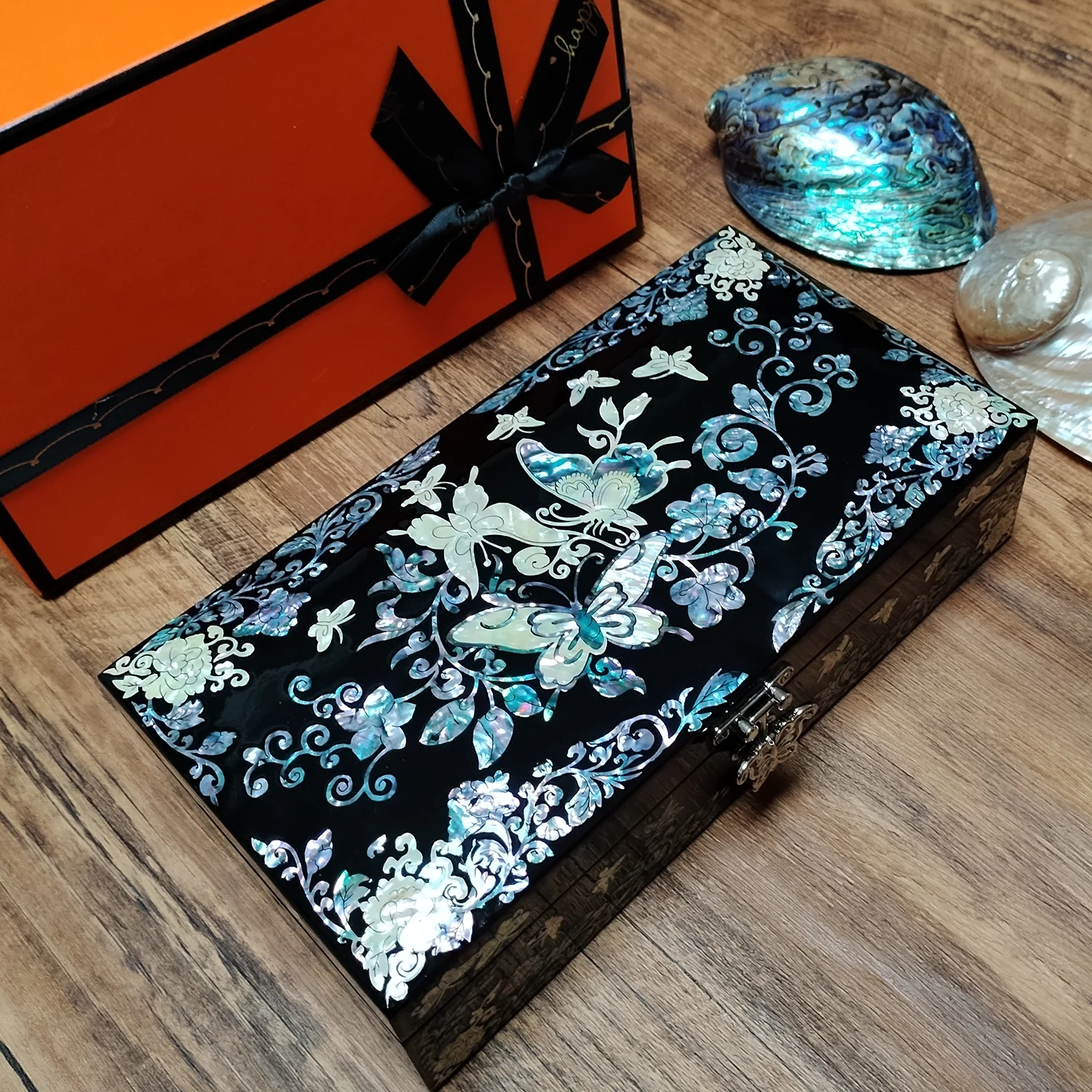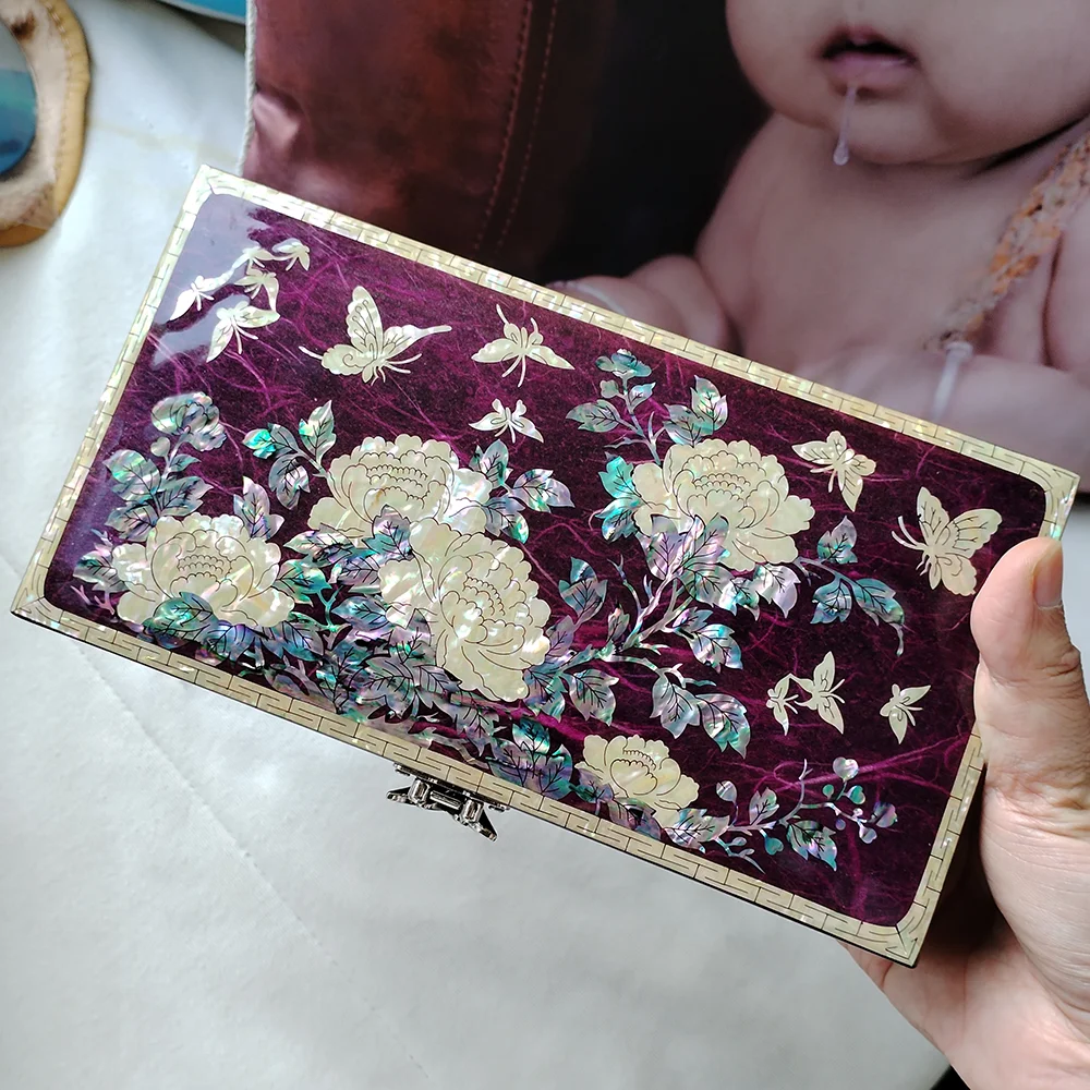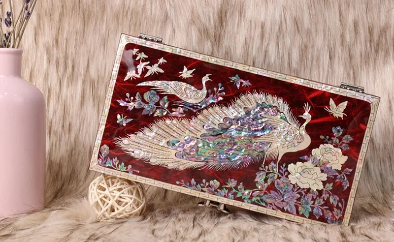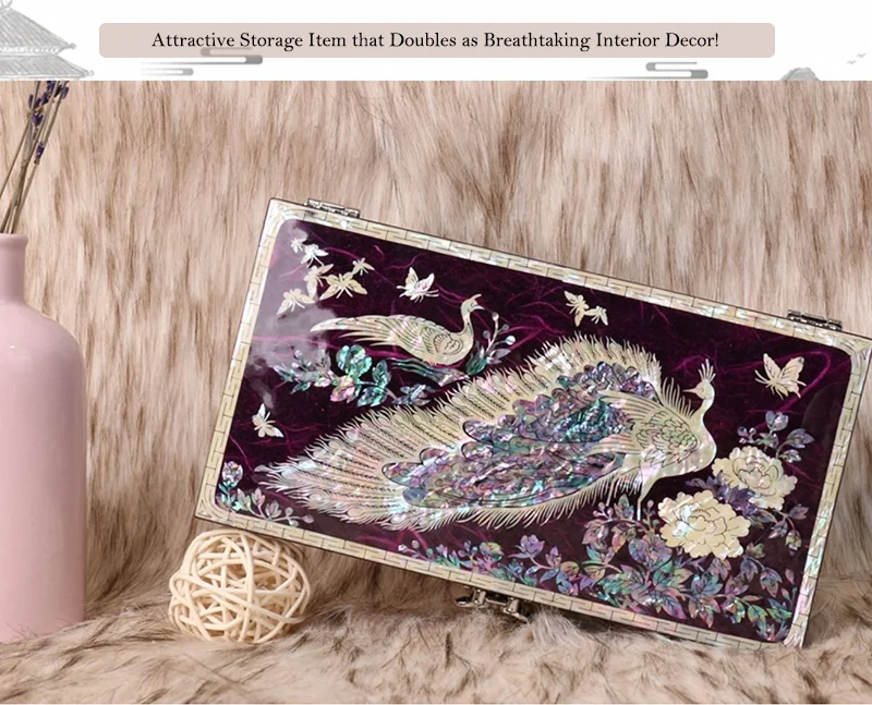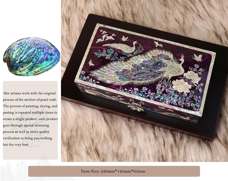 Mother of Pearl Lacquered Jewelry Box Peacock Hand Made Sea Shell Inlaid Crafts Organizer for Earring, Necklace, Rings, Gifts