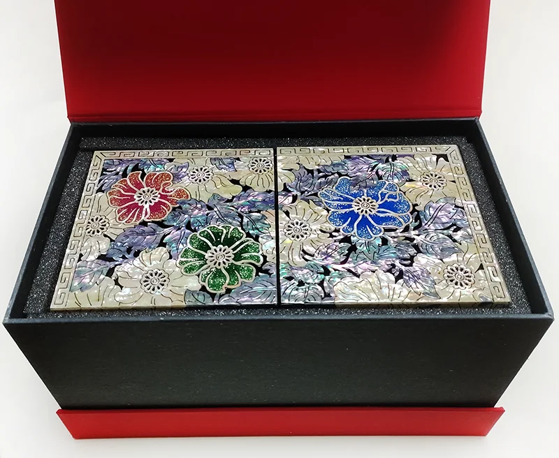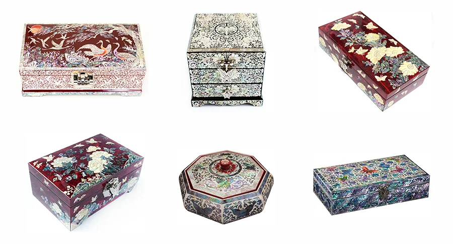 Mother of Pearl Travel Lacquer Wood Drawer Jewelry Ring Earrings Chest Box Case Sea Shell Inlaid Wooden Cube Jewelry Organizer