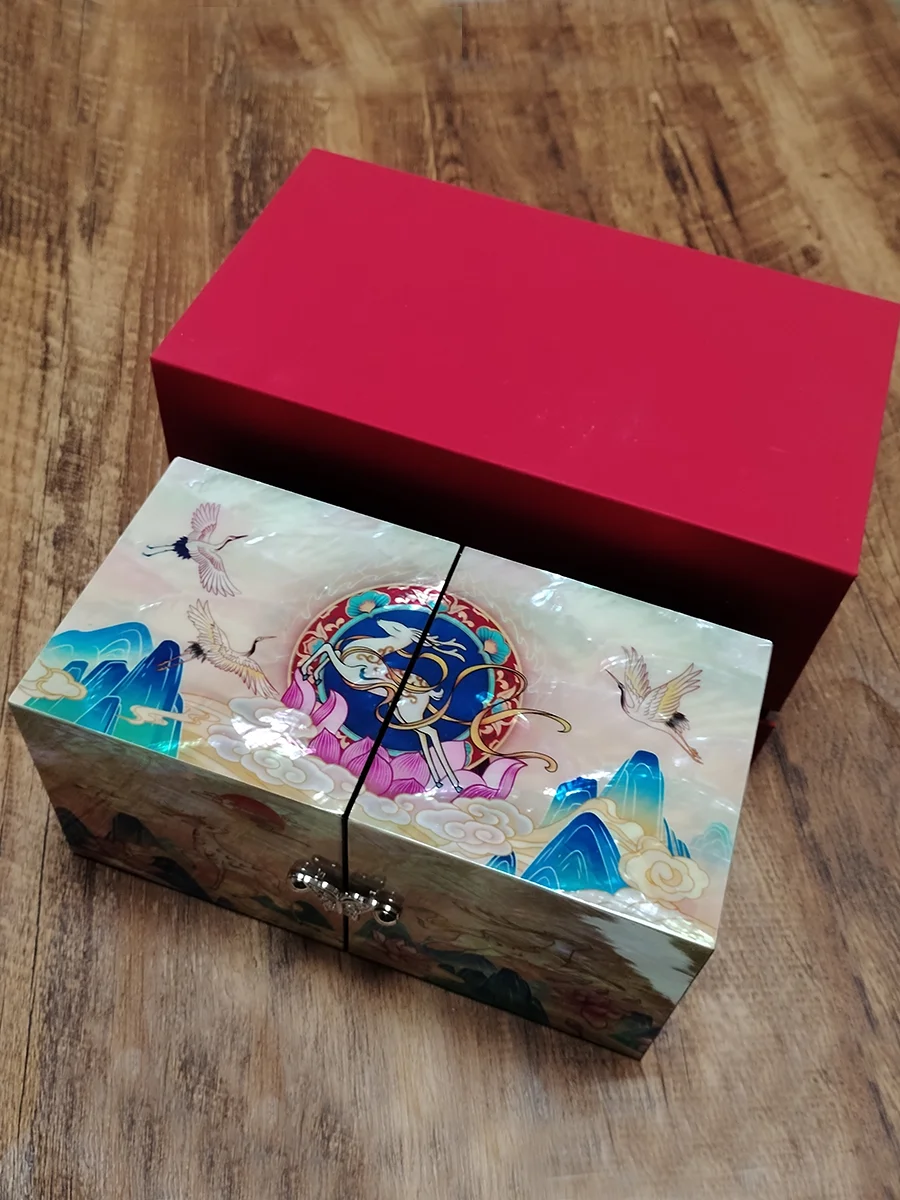 This oriental jewelry box is a meaningful gift for a loved one. It isn't just a box to keep your jewelry, but also a piece of decoration with a contemporary, yet classic design. This new jewelry box is beautiful and provides the perfect gift for your loved one.