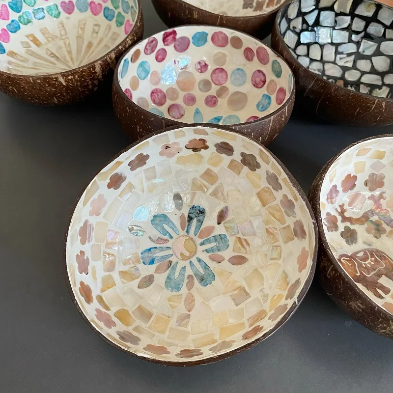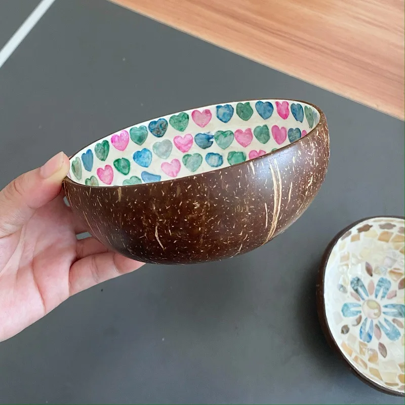 Painted Coconut Shell Bowl Entryway Key Storage Tray Salad Bowl Shell Coconut Bowl Wood Bowl Home Decor Storage
