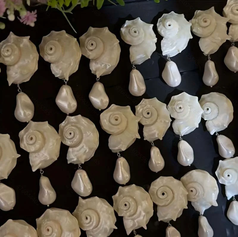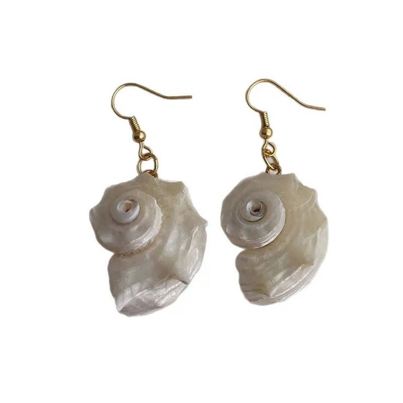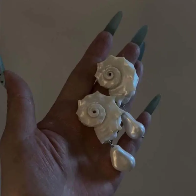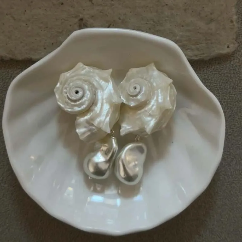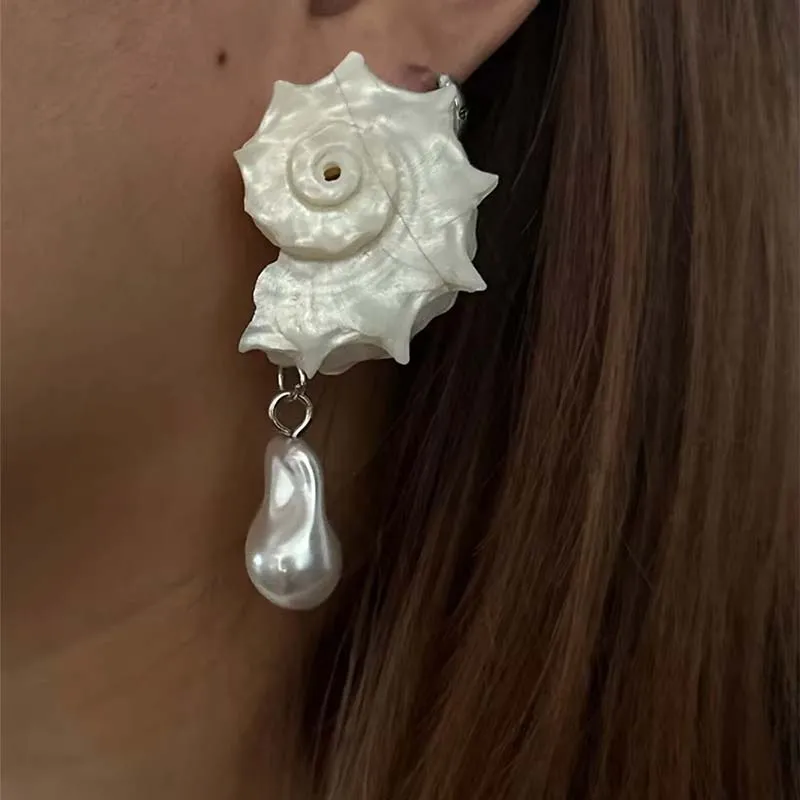 Vintage White Irregular Natural Conch Pearl Pendant Earrings for Women Girls Exaggerated Big Shell Earrings Summer Beach Jewelry